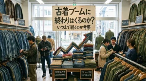 古着が高い理由は、希少価値、輸入コスト、需要の増加、フリマアプリの影響、一点物という特性など、さまざまな要因が絡み合ってるからなんです。