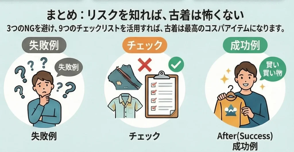 正しい知識を身につけて、後悔しない古着選びを実現しましょう。