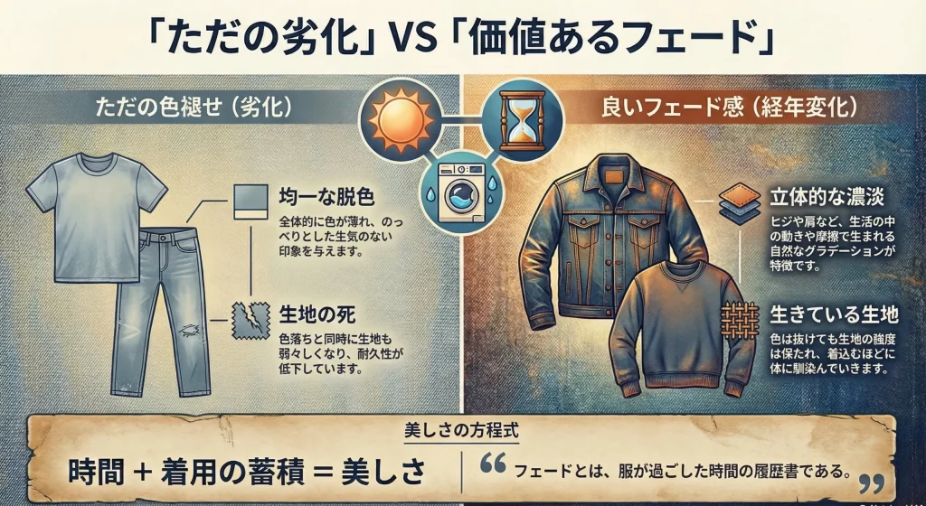 ここでは、フェード感の基本的な意味と、ただの色褪せとの違いについて解説します。