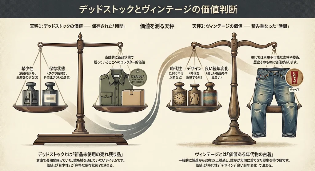 ヴィンテージの価値判断は、デッドストックより複雑。4つの要素が絡み合って価格が決まります。